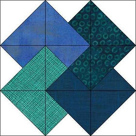 Block 10 Drunkard path block. The block is 10,5 bij 10,5 inch inclusive seam allowance of a ¼ inch.